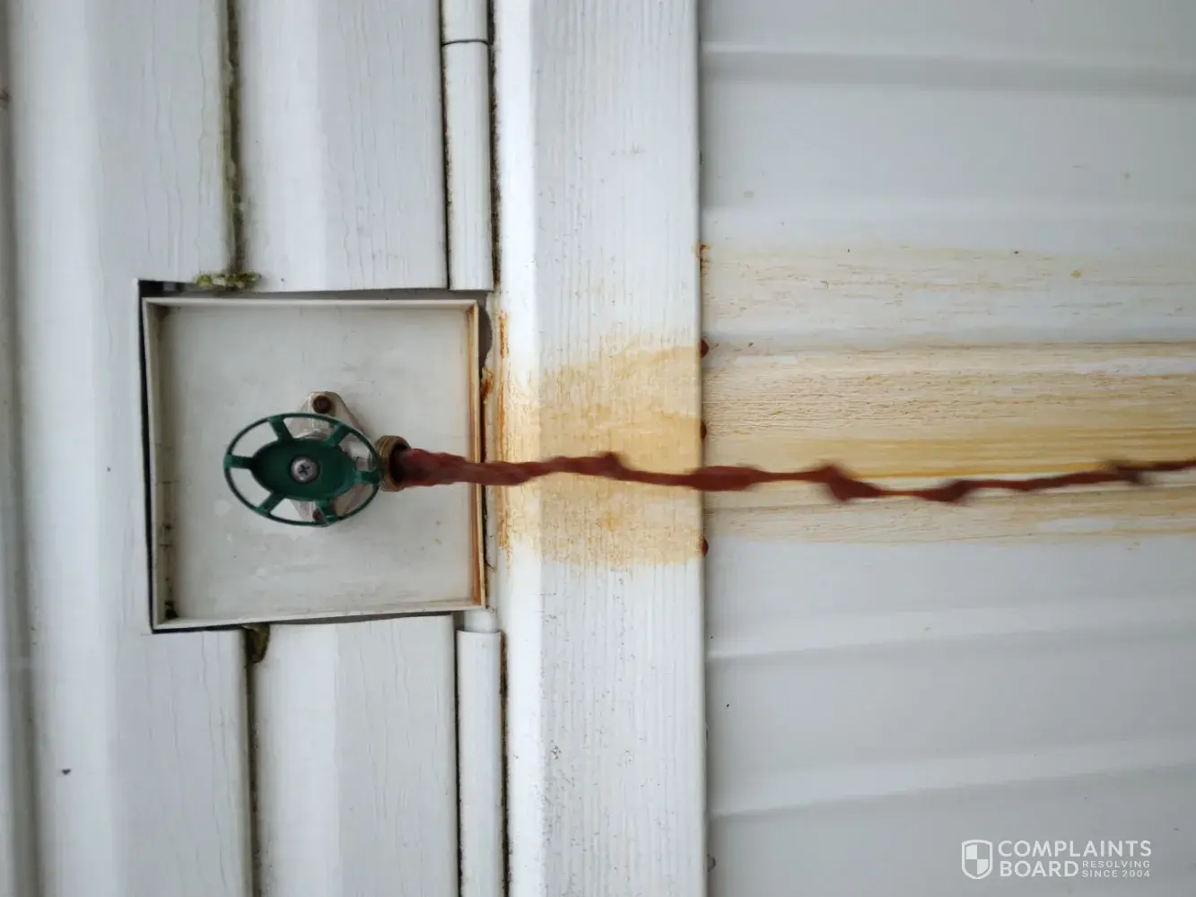 In the past 5 years I have had to change my water heater's heating element 2 times, the rust builds up to the Heating Element and shorts them out. Regency Point Estates water lines do not have a Flush Out Valve, and when they turn water off in the mobile home park and turn it back on we get a very large amount of rust. As seen in picture of my outside cold water line. Every Park Manager has said that it is coming from my water heater when there is no way hot water can cross over into my cold water line. I will have to change Heating Element again soon as you can see in picture taken Jan 24 2024 that shows my outside cold water outlet