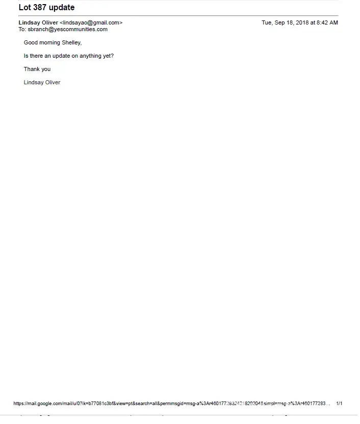 My name is Lindsay Oliver. I moved out of The Breakers from 9115 Ramiro Street Lot 387, Jacksonville, FL 32221 on July 31st. I spoke with Shelley, the property manager, on September 13th, in regards to not receiving anything from them regarding my move out. Shelley verbally confirmed during our phone call that nothing had been completed in the system for my move out; which explained why I received a billing statement in the mail for August rent, even though I no longer lived there. I have received zero response from multiple emails, phone calls, and even certified letters sent to corporate and The Breakers regarding my security deposit of $1, 550. Per Florida Statute, the proper procedures and time limits were not followed in this situation and I am due the full return of my deposit. I have attached all email attempts for contact with Shelley at The Breakers, which have all gone without a response. You will receive my final demand and the previous demand attempt at your fax number and email today, and a copy will be delivered through USPS. I have been patient while being ignored, if I do not receive a response with my full deposit returned, I will be taking this matter to court.