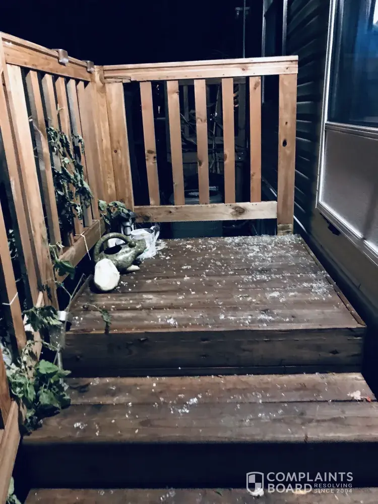 I have been a tenet and a prefab home in old Dutch Farms for one year and Three months. When I moved in, I was told at the trailer I was in was six months old. At the time I moved and I filled out a move -in Home inspection form. I was informed that the repairs would be made as soon as possible. It took nine months for them to make simple repairs. this was after Complaining constantly. One repair that was never done was that my screen door was hung wrong. It wasn't flush to the wall, which allowed air, rain and bugs to come into my unit. When the repair guy did come eight months later he put a partial strip across the top of the door and told me that the screen door was hung wrong and could not be repaired. Also the latch on the screen door would not let the screen door stays closed, and the wind would periodically blow the door open and banging against the wooden rail. So to alleviate this the maintenance person bent the metal part Of the latch on the door to make it stay shut. At times either the screen door would not easily open or not able to close at all. I did not Feel like constantly complaining again for another eight months before that nothing would be really done. Now I just have to put in a complaint, especially after I have been paying a rent increase of $30 since my rent renewal. First of all on 8 October I was in Ohio on my way back from a trip, when my alarm system went off. The police was called and no one got in but when I arrived home I saw that the Frame around the window where the alarm went off was bent and damaged. It clearly look like someone was trying to pry the frame hoping to get in the window. When I told the office staff they act like they didn't believe me. The maintenance guy came out saw it and I'll greet with me. Hey said that it looked like someone was casing my home when my alarm went off. A week later I came home at 12 AM on Monday morning to find out my screen door glass was shattered. Glass was all over the porch and my flower garden. I called maintenance emergency and left a message about this situation. The maintenance man called me back and told me he was in the hospital with pneumonia and that someone will get back with me either that day or the next day. I waited two days and then I went into the office and the staff acted like they didn't know anything about the situation. They sent a maintenance guy to look at The damage to my home. He told me he was just a substitute maintenance person and did not have the equipment to clean up or repair my property. He didn't look at my window and tell me that it look like someone let it try to pry it open and he did also mention that the damage to my door looked like someone had thrown a rock instead of the wind blowing it open. He told me that the regular guy will be back the next day, so I went in and again reported. The guy came out and dry Vacuumed the rest of the glass from my garden patio. He did not try to get the rest of the glass that I couldn't sweep up, off my porch or between the planks of the wood on my porch. I thought that at least they could have cleaned up the damage and put plastic or board up my screen door. This is what I paid my rent before and why I did not buy a unit and am Pay extra to read it. I am not a repair person I am a disable Senior citizen. I really like living in my unit. I like living in this part. But I am not happy with the management at all Anna how they deal with situations like these. I would like a response to this situation immediately. I have pictures of my unit and situation.