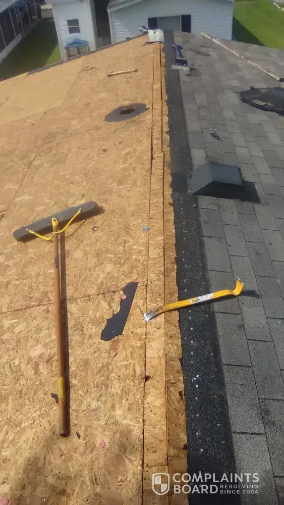 So we looked and he was patching not replacing so we told Jeremy this is not the agreement. Now he tells the men to leave left my entire roof bare and said we must vacate our home while work is being done, or there will not be anything else done I have a bare roof and tarp .my roommate has COPD and suffered extreme heat exhaustion and a mild heart attack because the insurance told us to