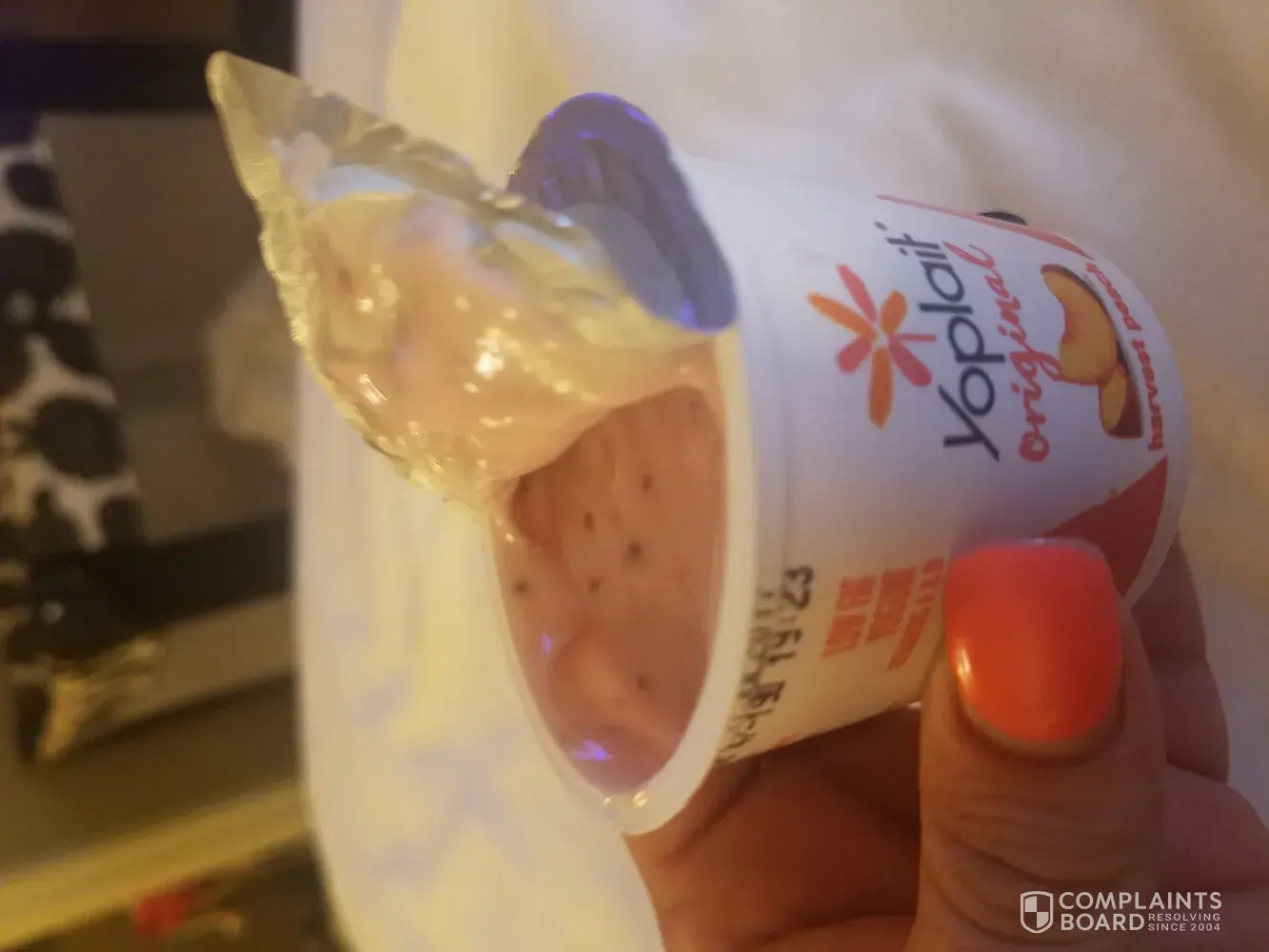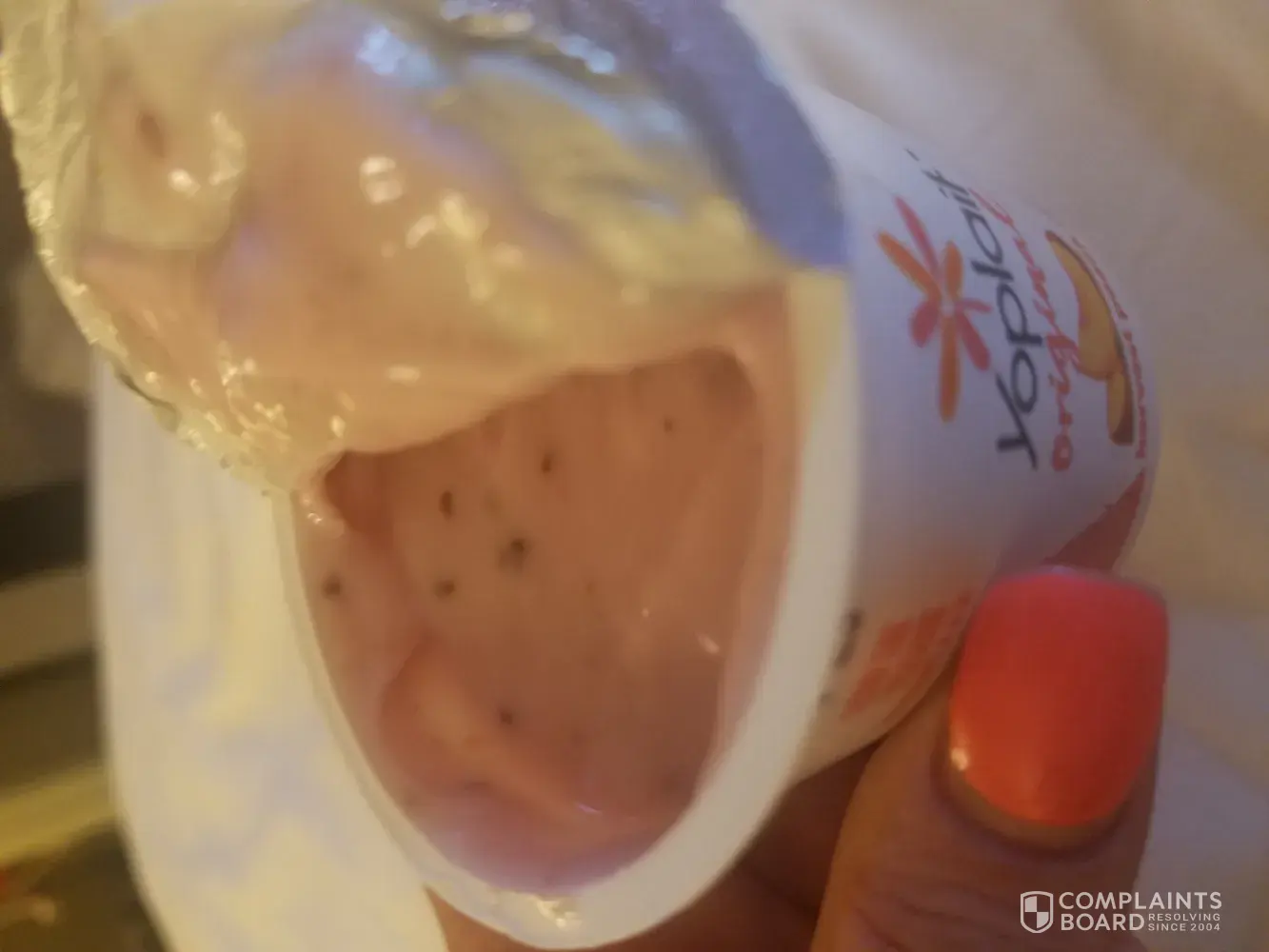 Ate the above Yoplait yogurt and I thought I smelled mildew or mold near the bottom. Checked the bottom and saw black along the crimped, bottom ridge. There was a gelatin glob that unfortunately I had eaten and although I don't think I need medical help, I'm either sickened by the idea or actually eating some mold in the container.