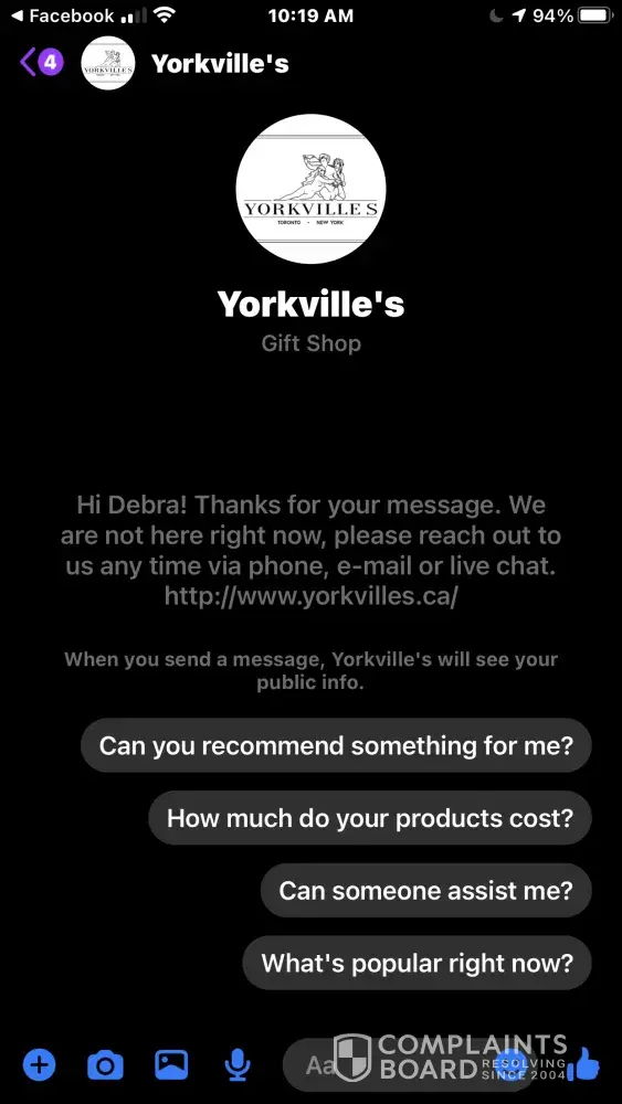 Awful customer service. Christmas gift sent to a friend was not delivered. They said it was, but provided no evidence. They then simply argued with me that it was delivered taking I presume a 3rd party company's word over mine. Refused to give me a refund, credit or even an apology.