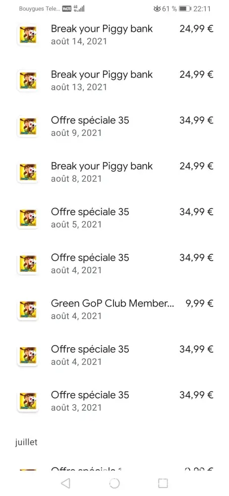 Bonsoir j'ai acheter pour plus de 2000 euro de pack dans Gop3 et je perds toujours aucun geste de la part des contacts sur le jeu je trouve ça déplorable. J'ai les preuves de mes achats en captures d'écran.. J'ai encore des photos je rachèterai que si Gop3 fait un geste commercial