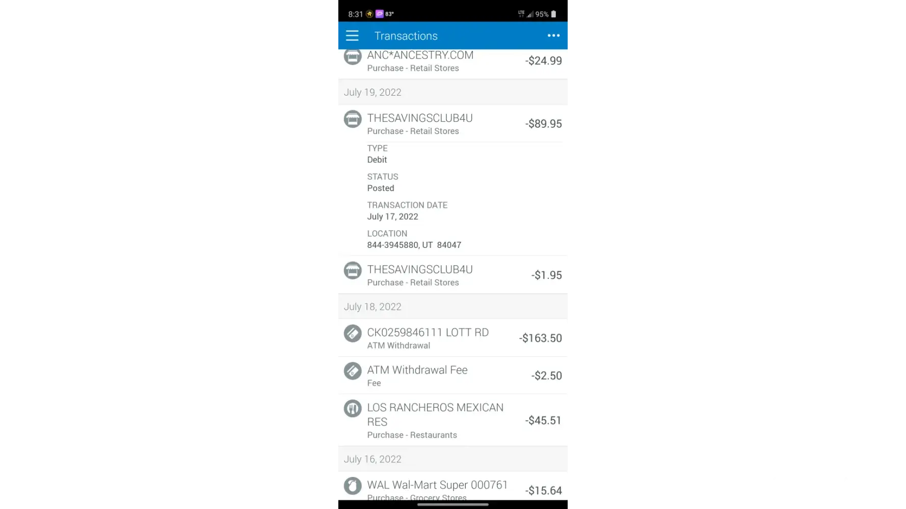 I saw on Facebook an ad to purchase an ice machine for 1.95 from Walmart because they were being clearanced so I filled out the form then my credit union left me a voice message telling me of a charge of $89.95 that was made towards my debit card. The company is Savings Club Now. This is the same company when looking at my bank statement that charged me $1.95 for the ice machine. This occurred on Wednesday July 20, 2022.