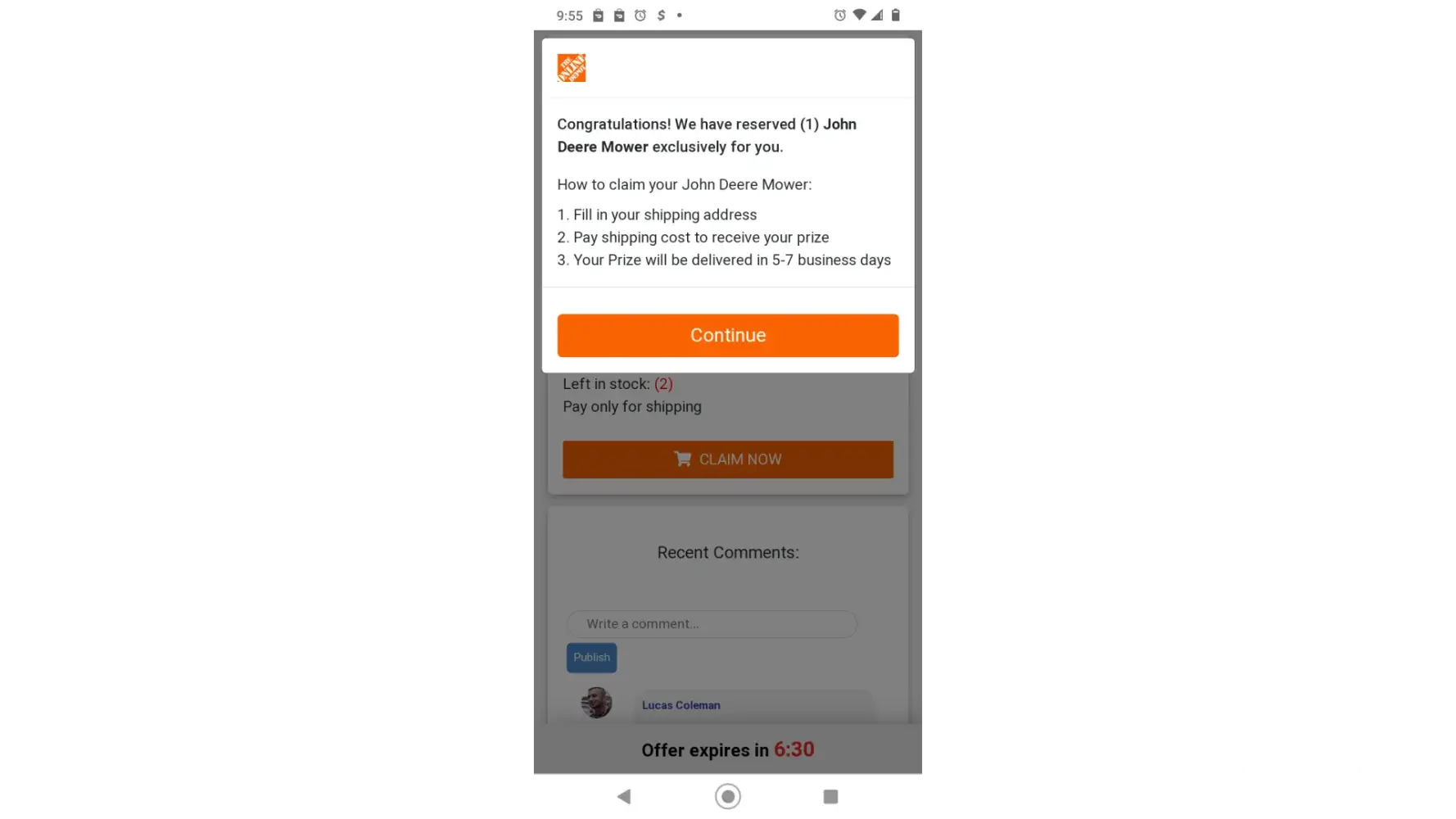 I was told that I won a piece of equipment, but I would have to pay shipping , $1.95. I noticed on my account that I was also charged $89.95. This was not authorized. This happened on 5/31/2022. I received an email back from you saying I needed more information. I'm not sure what I am missing? The original was from Home Depot.