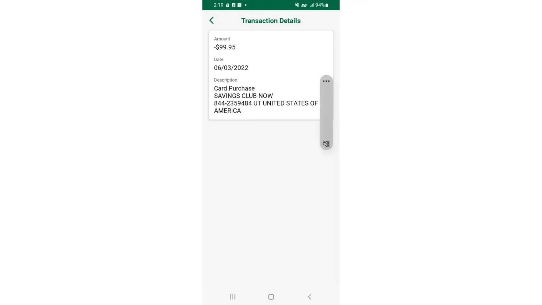 Unauthorized debit card transaction