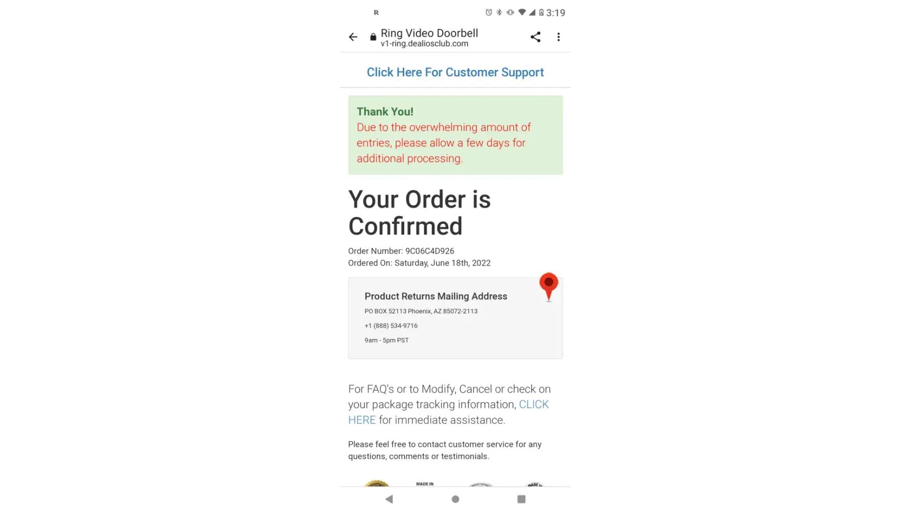 I was told I won a doorbell camera and to send 1.95 for shipping not even 4 days later 3 different transactions have been done on my card! May 17 2021! Transaction have happen may 18 may 20 jun 1! Each time 89.99 was removed out my account! I am a single mom of 2 barely making it I dont have those funds to give away! I am with rushcard therefore they want even dispute the transactions! This is horrible and heartbreaking! My email is [protected]@yahoo.com number is [protected]! Someone pleaze look into these scammers!