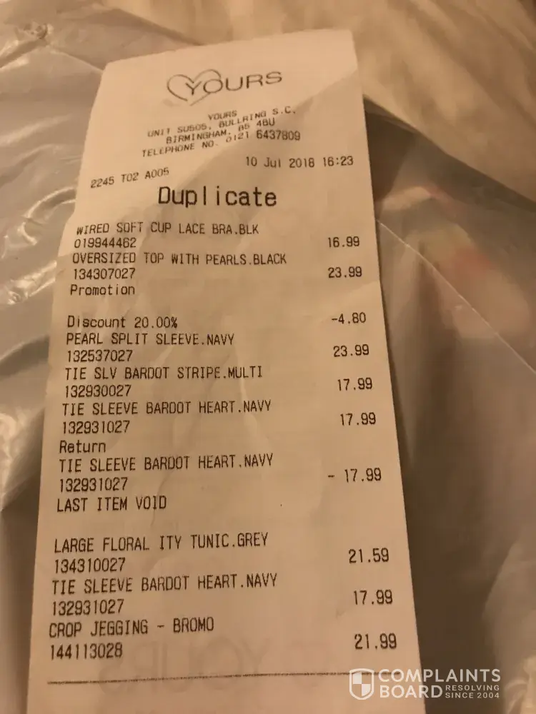 Another occasion i returned an item with recxeipt the Manager took an iPad picture of my receipt is this company policy? I felt quite bad returning items there, I spent alot of money in Yours clothing. I was pleased for a Mansfield store to open now i feel this is not the case.