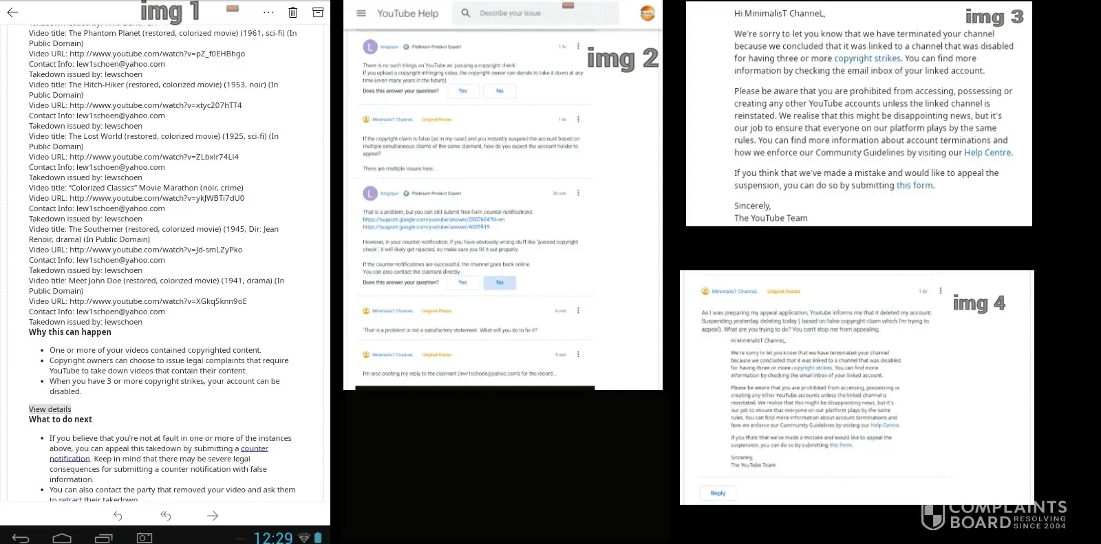 - Youtube immediately suspends my account upon receiving multiple simultaneous false copyright claims of an individual (claiming he holds the rights to colorized editions of various public domain movies, without legalizing his claim through copyright registry).