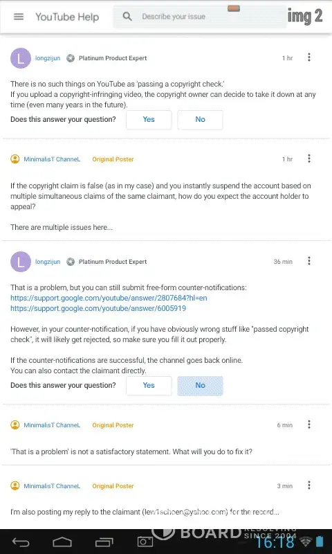 I have posted my complaint to all major forums and platforms. 2 weeks have passed and counting. No answer from Youtube (perhaps they don't have one).