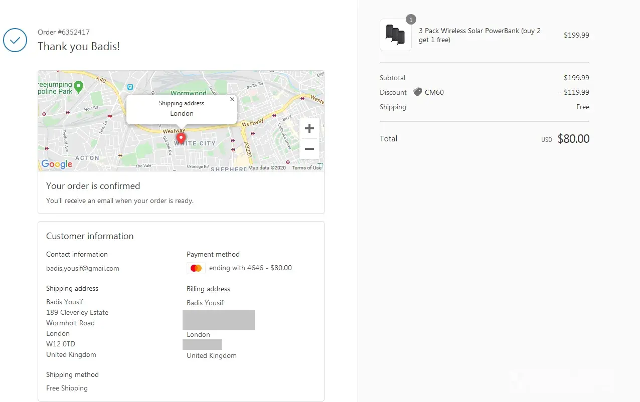 There were adverts for LitSolar power banks on YouTube! Looked like a good product with its own channel. I went on their website, litsolar.com and made an order for 3 units for a total discounted price of $80 for shipping to the UK. This was made on 21 May 2020.
