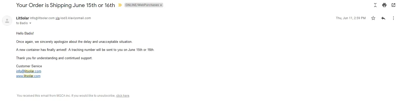 You have an advertiser called Lit Solar. I believe it is a Fraud. It is advertising on Google, selling a product, and then taking the money and not sending product. Many complaints are filed on BBB. I have emailed them several times and also tried to call them. No response.