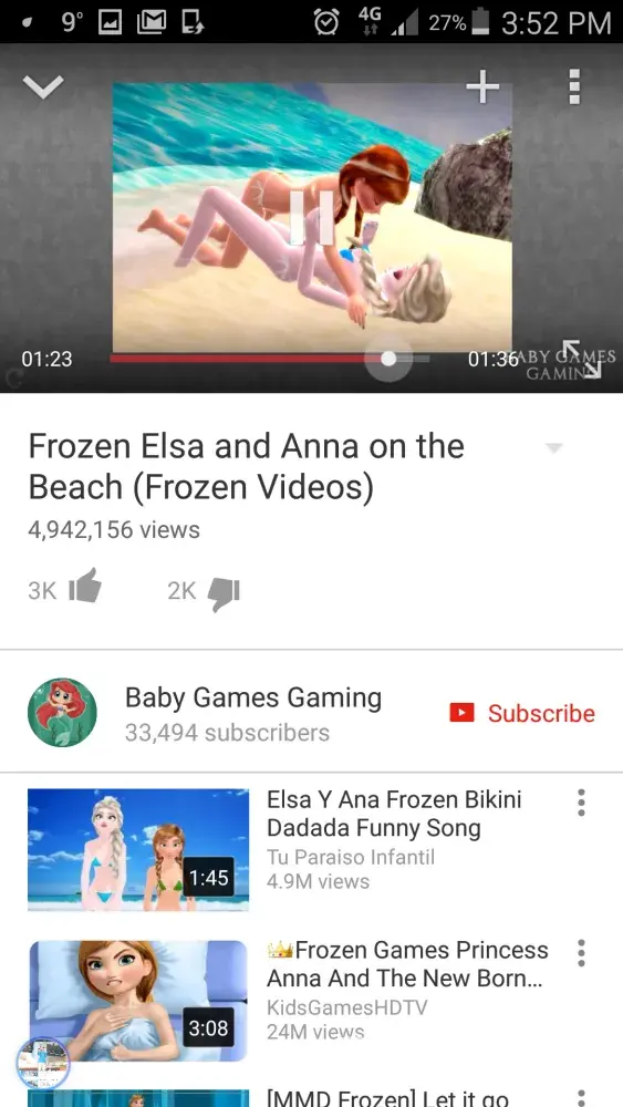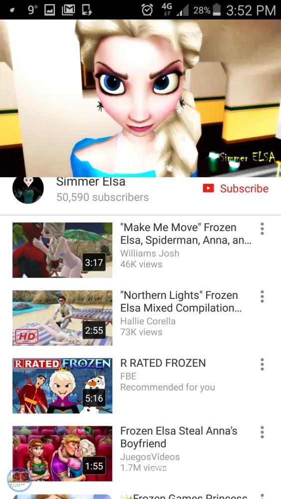 Whatever children's tube clip we goto say for example Anna and Elsa etc, there is alot of sexual content, people going sick and throwing up and doing disgusting things on the toilet. Violent content on some of these clips isn't acceptable for viewing from a small child. Movies which contains violent, vulgar scenes, sex scenes and disgusting items are mix with nice, good movies so it's not possible avoid them or keep them away from children eyes. Movies like this put in children heads a lot of agresiv behaviour and they loose respect to everything and loose clear vue on life. We try to teach our children peace and respect not violence or fighting... it's highly unacceptable and we hope YouTube customer service gonna protect this children links - movies from this.