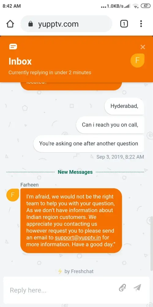 I'm the Yupp TV customer since 2017, I get my subscription ends on this month but The customer executive should be calling me on reasonable timings, not at night 10 PM