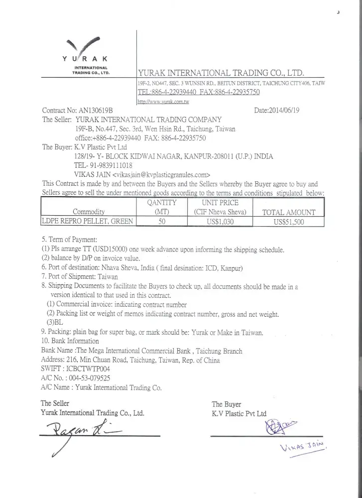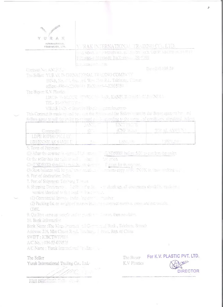 Myself vikas jain, m.d. of k.v. plastic pvt. ltd., kanpur, india. i had a very bad experience from yurak international. i visited taichung, taiwan in june 2014 as i was invited by mr. ragan liu (the owner of yurak international) for import of plastic granules. they showed us a very good quality material in their warehouse and even they welcomed us in a very impressive manner and gifted us a lot of things which impressed us about their generous behaviour, therefore i finalised a deal with them and made full advance payment to the party along with excess 15000usd as a security for next consignment. in total, we have given 15000usd as security to mr. ragan liu along with 48, 250 usd for the import of lldpe plastic granules in india. after around 45 days, when we received the material, the whole lot was not according to the sample shown to us as it was very dirty and was a very low quality material. when we then tried to contact the party, there was no response from their side. so, then i tried to know about this party through other people there in taiwan, i was informed this is one of the fraud companies who have already cheated many people the same way. around 16 months have passed and we have taken so many efforts to contact this party by sending more than mails to them and even through government bodies like tetra, bureau of foreign trade(taiwan), deputy director( taiwan) as well as i even visited personally to the embassy of taiwan in new delhi and showed them all the documents but till now there is no response. we even called mr. ragan liu so many times and after many calls, he answered one of them and threatened us that if ever i visited taichung, taiwan then the will try to arrest me somehow and i will never able to go back to india. their full company details: yurak international trading co. ltd. 19-f.-2, no447, sec.3, wunsin rd. beitun district, taichung city 406, taiwan (r.o.c) tel: 04-[protected] mobile no of ragan liu - 00886-[protected]