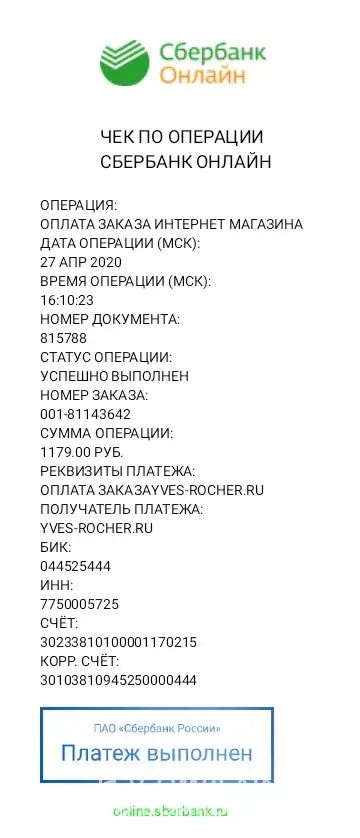 I placed an order for 2 anti hairfall serum from Yves rocher worth 1180 rubles they deducted my money from account but never told me order is placed or order number I sent many mails to ask to give my money back or send me product but they never answer.I have screenshot of deducted money and note given to me