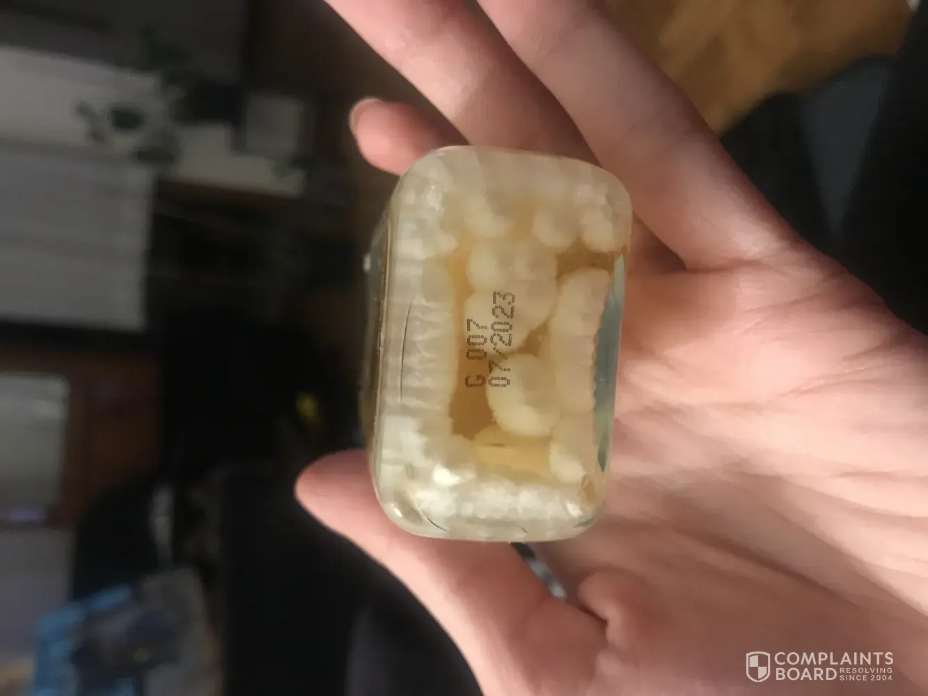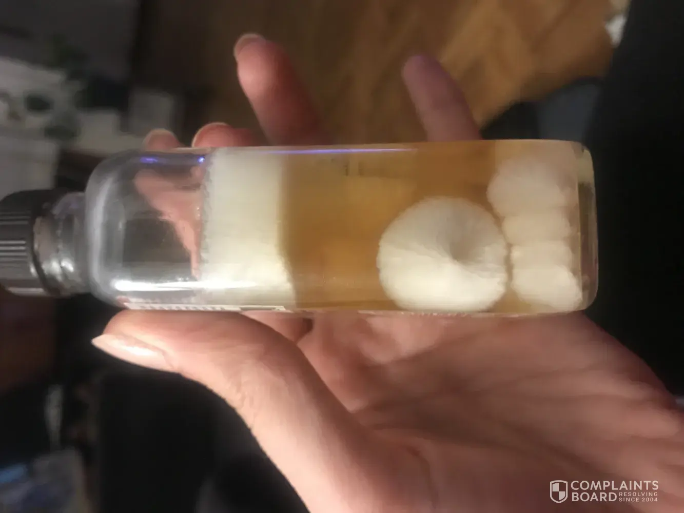 Hi, I have a product quality complaint regarding monoi de tahiti. I bought "monoi de tahiti" several months ago. I have been using it since last month. Beside I dont use it frequently today I realized that there is something inside seems like fungus. I cannot describe it well, I attached the relevant photos.