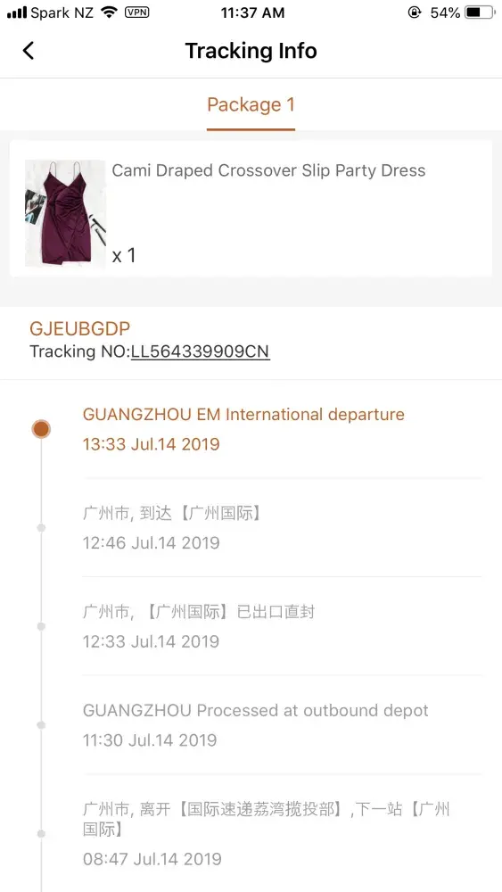 I ordered this dress on the 12th of July and nothing has been shown on the tracking information since the 14th. I also realised I ordered a Large instead of a medium in which I need the medium. I understand that it can take a while but it has been over a month and still nothing. I would like a refund or for a Medium of this dress to be shipped. Thank you for your consideration.