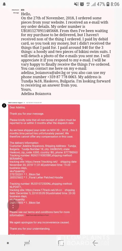 Zaful clothing not delivered