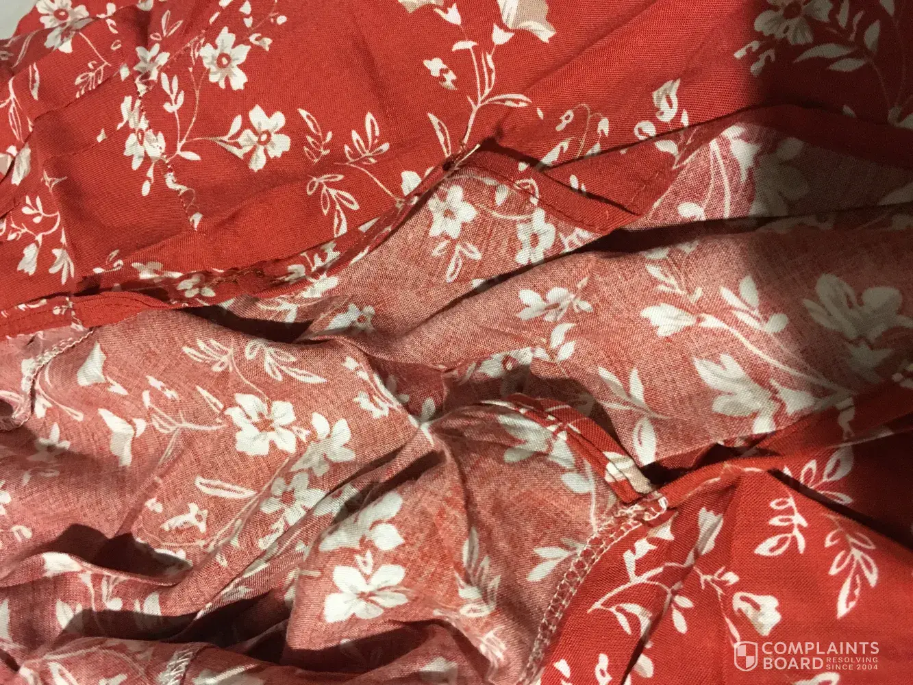Upon arrival, one dress was damaged which I repaired myself. (see attached photos) The bag after two days usage (carrying a book and sun lotion to the pool and back) then broke. (see attached photos)