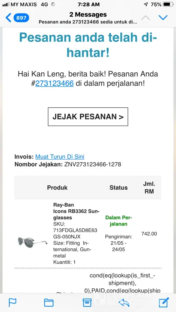 order #[protected] from ZALORA MALAYSIA