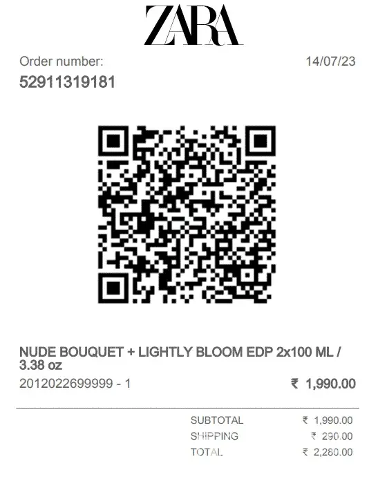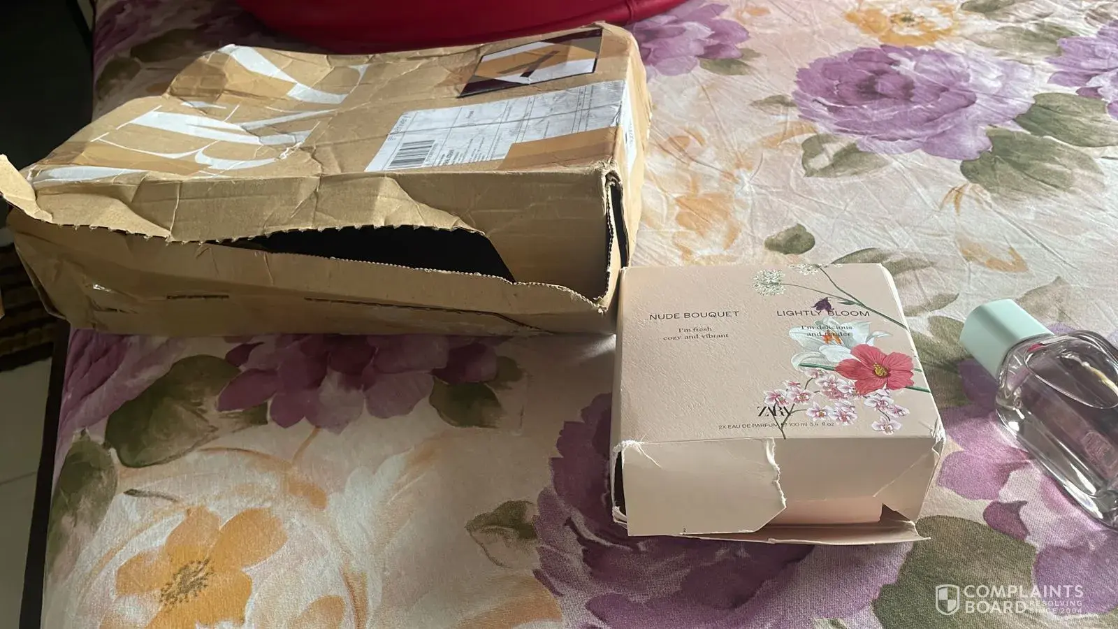 ORDER NO. [protected]. Photograph of damage box is attached. Zara is reputed brand, and we don't expect such delivery of the material online.