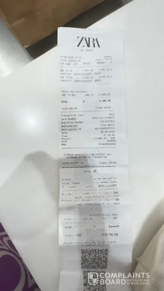 I am writing to formally file a complaint regarding a highly disappointing experience at your Madinaty branch, Cairo, Egypt On [insert date], I purchased a women’s dress as a gift. I specifically requested assistance from the sales representative in selecting the correct size, providing another dress as a reference. The sales associate handed me a...