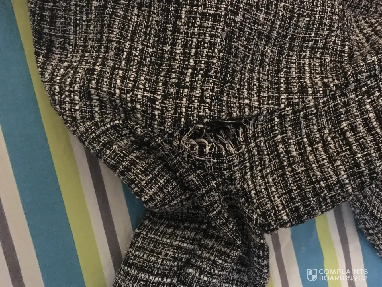 I bought a women's work jacket from a Zara store in London. In my first wear itself i saw it tore at two places ... shocking for a brand like yours