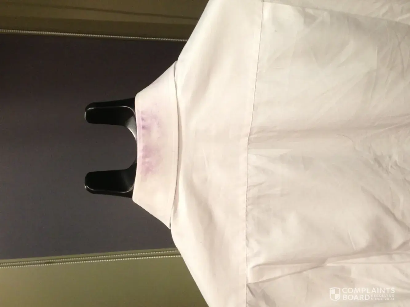 I’d like to bring this to your attention about the quality control of your merchandise, and to seek your opinion on exchange of this suit and compensation for my three ruined shirts.