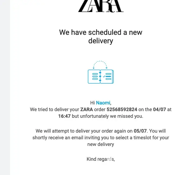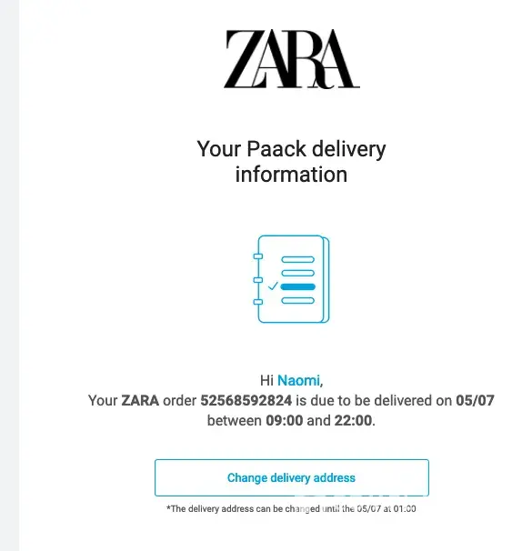 Zara claims that the delivery was done successfully.