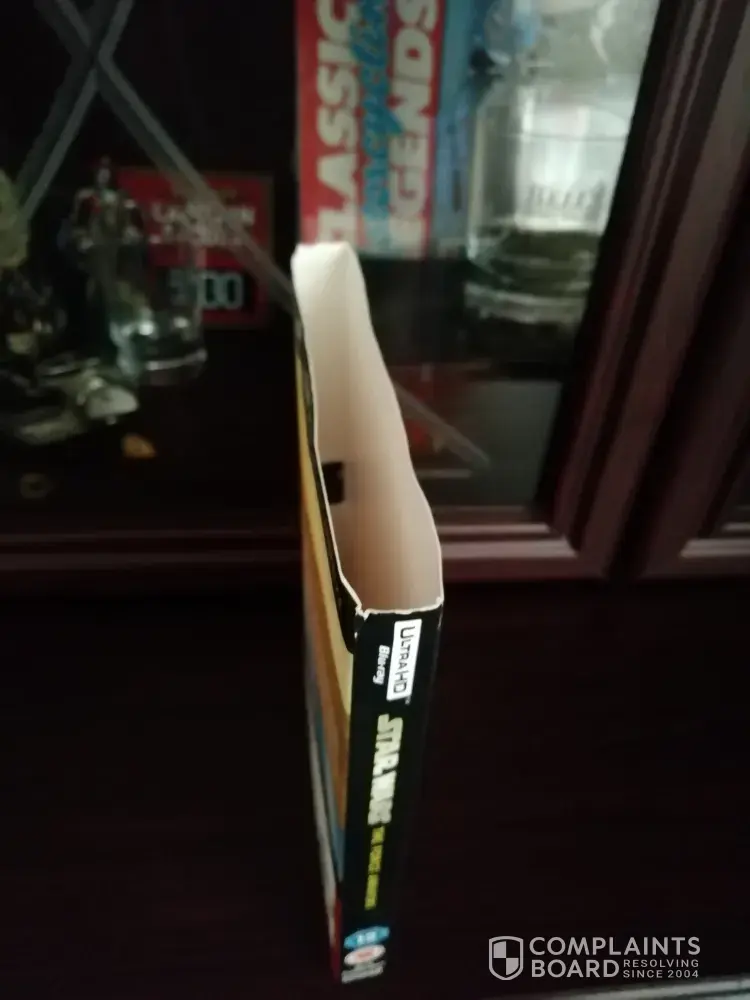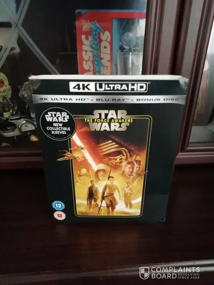 Basically I have spent nearly £200 pounds on Star Wars 4K ULTRA HD Blu Ray disks. The first two arrived & both of the cardboard boxes are dented on all the corners and I orderd 9 if I remember rightly, so if the first two arrived damaged I can imagine the rest will be same. Can't get through to them at all no phone number, they have a live chat but it's not working, you can only send one pic as proof of damage and it takes two days for them to replie. Their not for me, they for Christmas for someone else. Hope you can help.