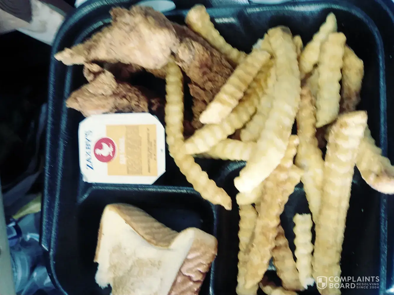 I ordered five piece chicken finger platter with honey mustard sauce and coleslaw I paid 9.00 . The tenders were burned the coleslaw looked like it was eaten out of they gave me zaxby sauce instead of honey mustard. The fries were burned. I work down street and couldnt take it back. Im pissed i couldve got a plate down street. I want some form of compensation