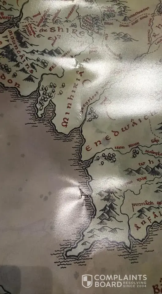 When I opened the box to get the printed map out, I was astonished to see that the picture was considerabley damaged and un-usuable due to the print being so badly packaged and handled.