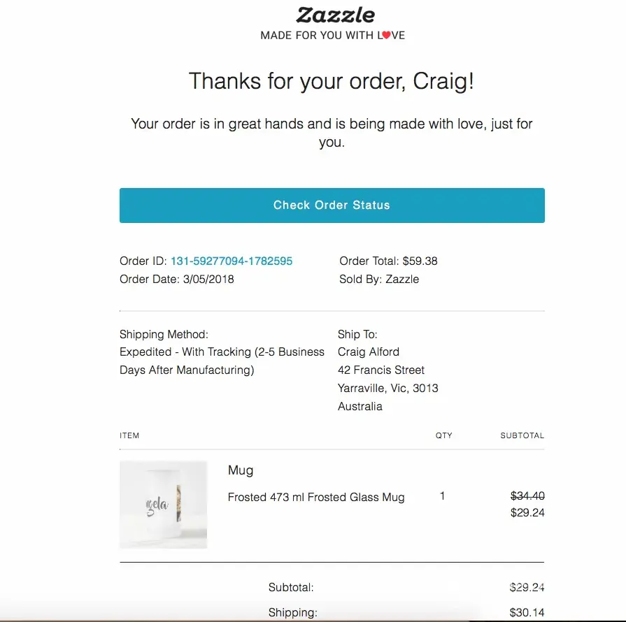 Despite sending Zazzle a photo of what they sent me, not once but twice, they still wanted further info such the order number of the other person (as if I would know) before they were willing to recognise they messed up.