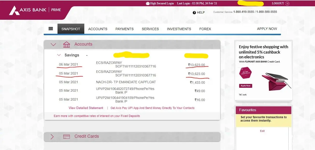 Zestmoney debited my account for emi payment for the month of march 2021 as usually on 5th march. Again on 6th march my account is debited for emi payment for the second time. Which means I had to pay 13623 once a month for 6 months, my account is now debited twice i.e., 27, 246/- for the month of march 2021.