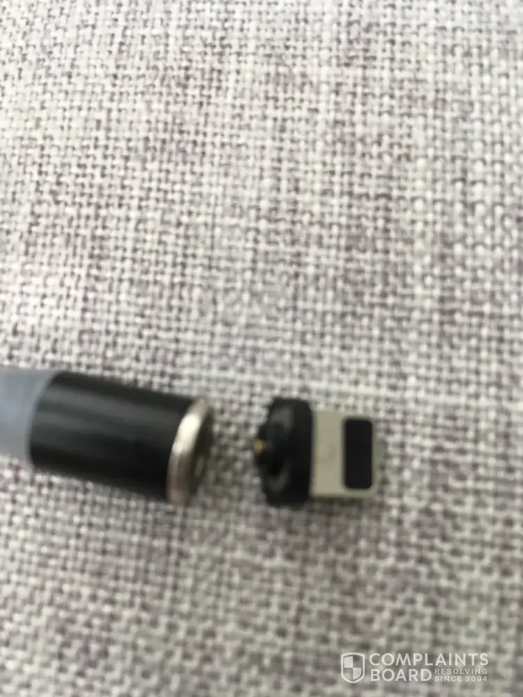 I purchased an iPhone Sparten charging cord on June 24, 2020 from Zest Ads through PayPal Shoponline, order number [protected] in the amount of $17.90. Transaction number 5UT90317UM119562F. The tip of the devise broke off the cord and cannot be reinserted. Therefore, power will no longer go from the cord into the phone. Please refund the $17.90. See photo of the broken parts.