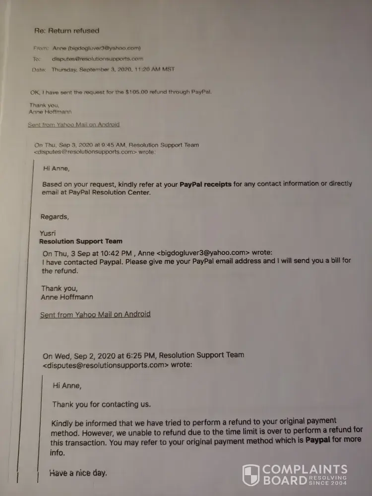 Desired outcome: Full Refund through PayPal