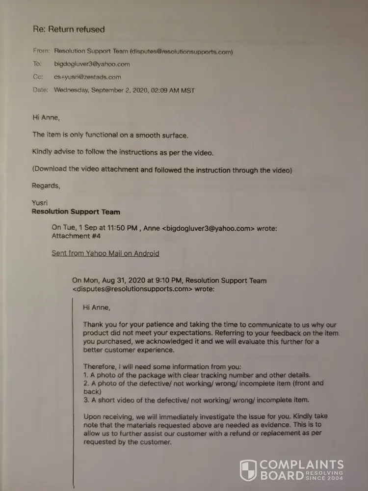 I was shocked at how completely ridiculous and unreasonable their demands for proof of a faulty product are. After much time and effort preparing a video small enough that my email service provider would allow to send (25mB) I met their demands for proof of faulty product & provided all the items they "requested" and after over a month I still I have not received a refund.
