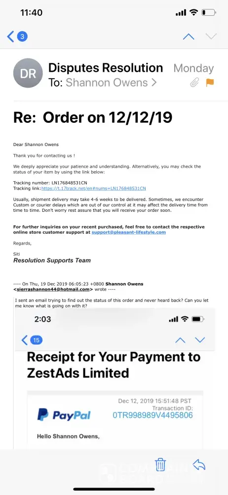 I made a payment of $135.85 USD to ZestAds Limited for a Drone, Transaction ID: 7MF30948L57932027. I have received nothing.