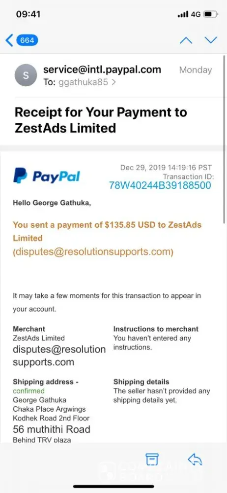 After that I have not received any further communication as to the status of my order neither have I received an email detailing how my package is to be delivered, On closer research, I discover that this company is a scam and I could have fallen prey to the same scam