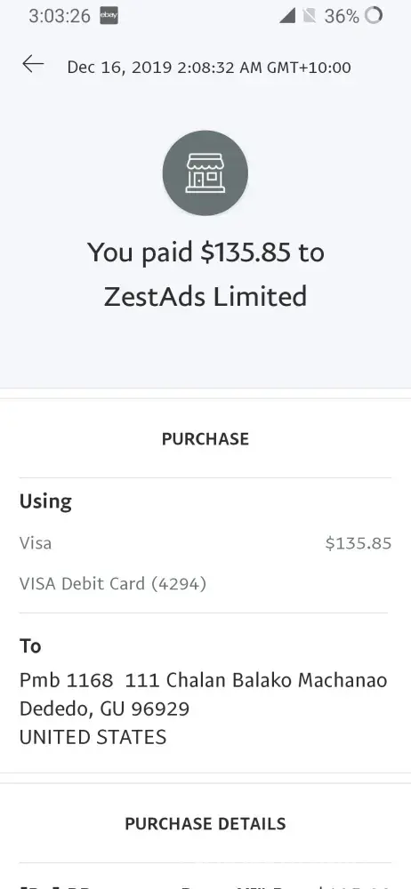 You sent a payment of $105.90 USD to ZestAds Limited