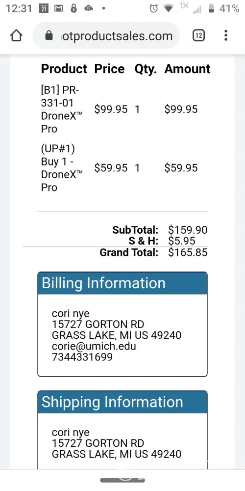I ordered a Drone on your site and PayPal has confirmed payment (transaction number above)...but I received no confirmation.