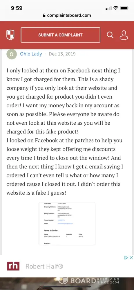 I ordered these patches to loose weight it was 72.00 charged to my paypal I paid for 100 of them in October 2019 and a few weeks later I received 10 patches what a rip off I want my money back I've sent them complaints to there email they never respond. I first saw this add on Facebook it seemed to be ok and it said website was secure so I thought ok seems to be ok but boy was I wrong they are a rip off they just take your money and don't send you what you paid for I want my money or my product.