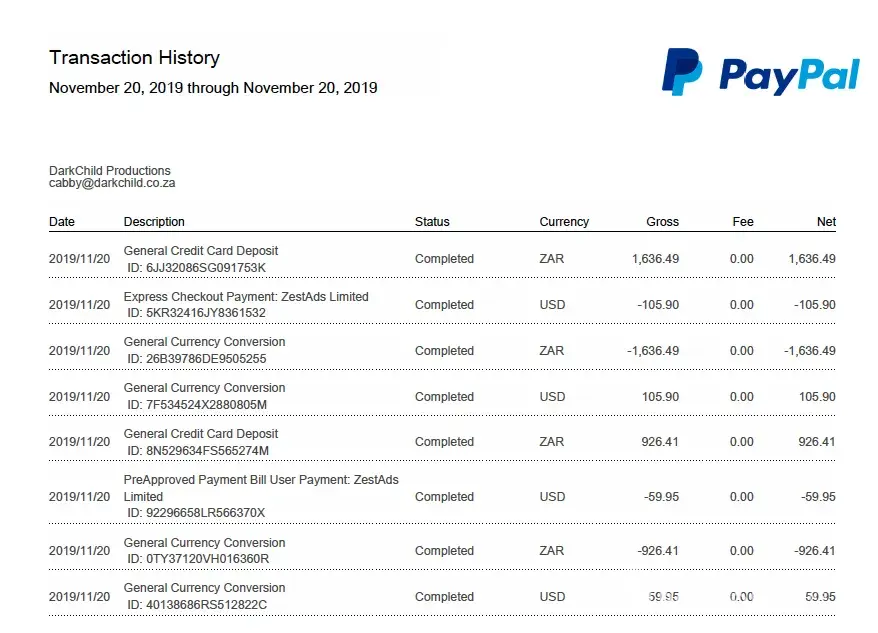 I submitted an order November 18, 2019. Paid via PayPal debit from my bank that same day. I have not received any direct response from Zestads. The contact website for Zestads listed by PayPal is now a closed domain, per GoDaddy, with whom the domain was registered. The physical IP address that was previously associated with the domain is now blocked by the hosting vendor. Zestads sent a tracking ID for the "shipment" to PayPal. The shipper reports from their website that the tracking ID is invalid, and is not associated with any actual shipment.