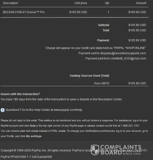Ordered the DRONEX PRO and like most of the complaints I have seen on here, 3x Order Numbers, no tracking number or customer service for the two emails I sent after paying the $9.95 VIP Shipping which was not avoidable to have it shipped the same day. Of course, when I received the receipt for the purchase, no tracking number or confirmation that they even had started processing my order. Looking up the company, seems they ship out of China. I've dealt with sites like AliExpress, and they have far better customer service than this company. I have put in a refund request to PayPal for the $105.95 which I can put towards the same drone from the actual company. As a matter of fact, I probably will end up ordering from the actual company.