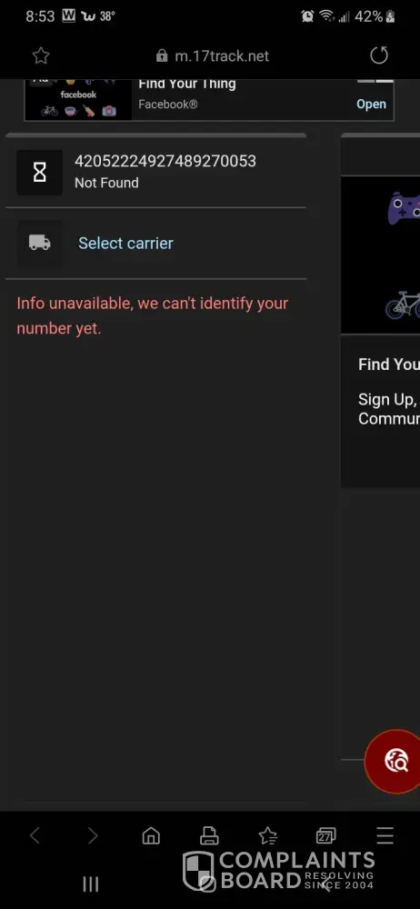 Email for tracking # 4202752092748927005414010002173934 says the exact same thing. I have asked for proof showing me a receipt or official notifications that they are in possession for this products. Or is Newgistics one of the many companies that is an entity with your fraudulent company? I want a refund for both orders. I will be reporting this to the FTC for fraud and to the AGO. These orders were purchased on FB.