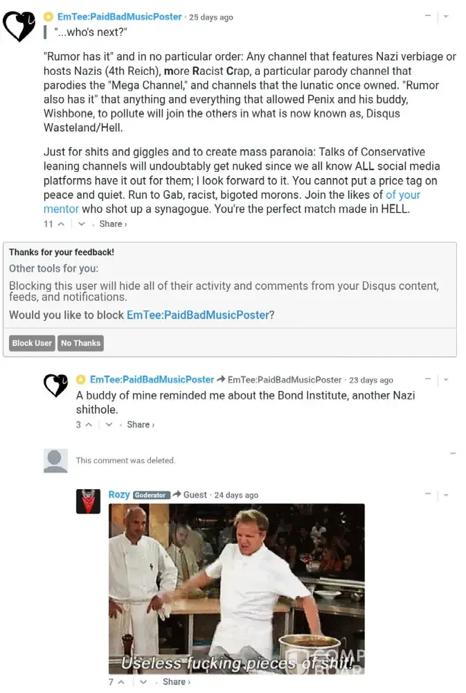 At that time Zeta and Disqus promised to start removing "toxic hate speech"
