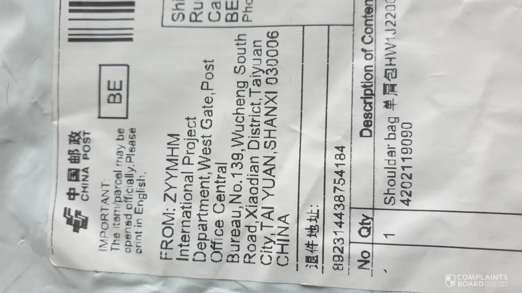 CB Online Shopping Review of Zhuangrantrade/ Zyymhm