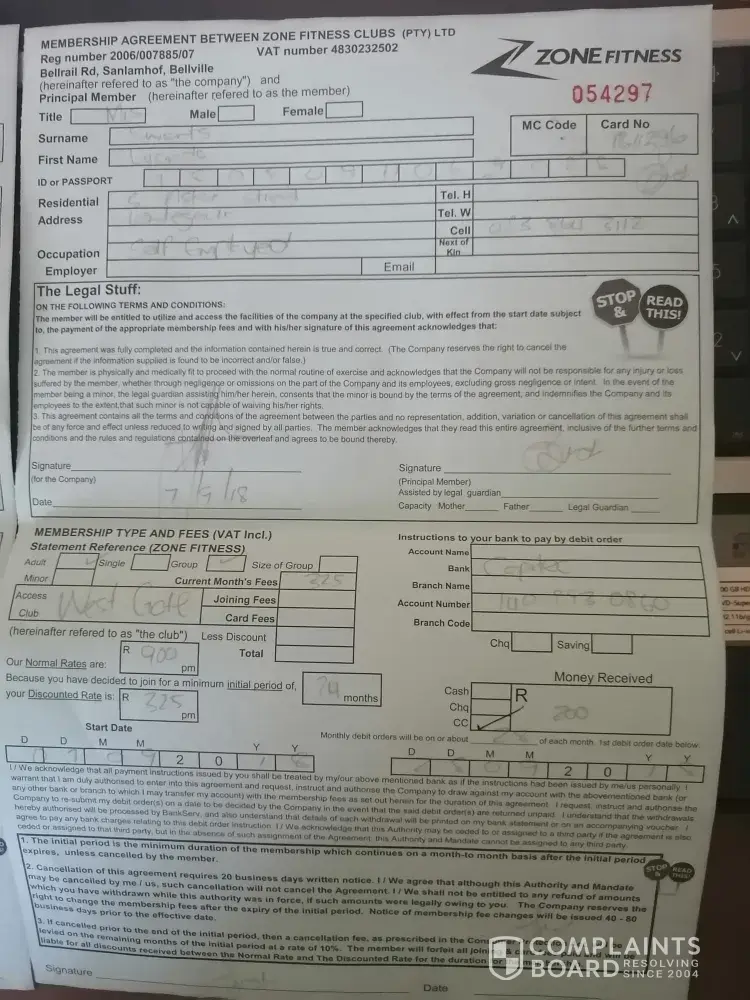 I wanted to end my contract during lockdown because they wanted to take 50% whilst we weren't aloud to use the gyms at all. Then when the gyms opened I wasn't aloud to use the equipment or private room but still had to pay the full amount every month. I had to stand in a long line because only 50 people was aloud in the gym. I still had to pay the full amount when I wasn't getting the service I agreed to in the contract. I asked in person at the gym to cancel my contract but they said I must phone head office. I filed my complaints via email but nothing. I told head office I want to cancel but they ignored me. Then this Tuesday 2nd december I got a message saying my debit order failed to zone fitness. I phoned them wanting to clear it up immediately and pay the same day but then they said I must pay a penalty on top of the normal fee which I wasn't late with payment and I asked for banking details and they still haven't given it to me. I then phoned to cancel my contract. They said the can only help me Monday which is ridiculous. Finally another of their debtors named Elizabeth phoned me yesterday morning saying I need to pay R2025 to end my contract and that she will put it on email right away with banking details. I am still waiting for that email of the amount she said I have to pay and the banking details to end my contract permanently with Zone Fitness gym. Please help me. I have been paying every month never late and I want to end the contract once and for all because I am not getting what I agreed upon in the contract I signed.