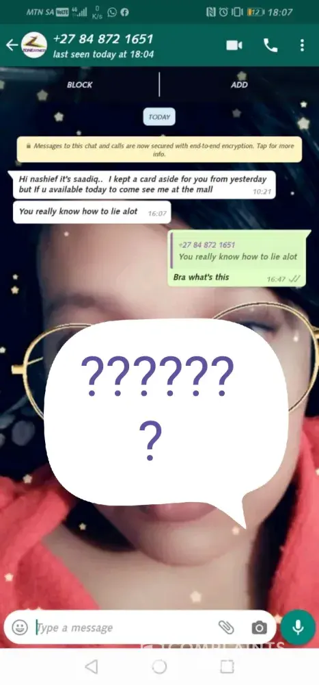 We check out the gym and I wasn't happy about where the kids would have to wait. We informed saadiq at the westgate mall branch that we going to virgin to enquire and will let him know what we decide. He calls later the day and we inform him it's okay we will be registering with virgin. The next day he sends a msg "hi its saadiq. I kept a card aside for you yesterday but if you available come see me at the mall. You really know how to lie alot" *